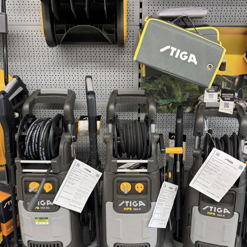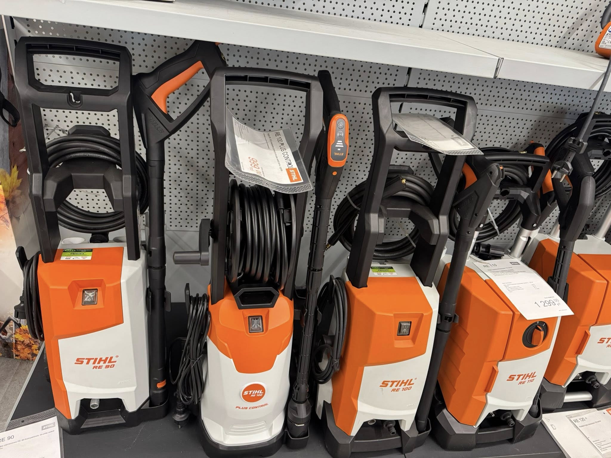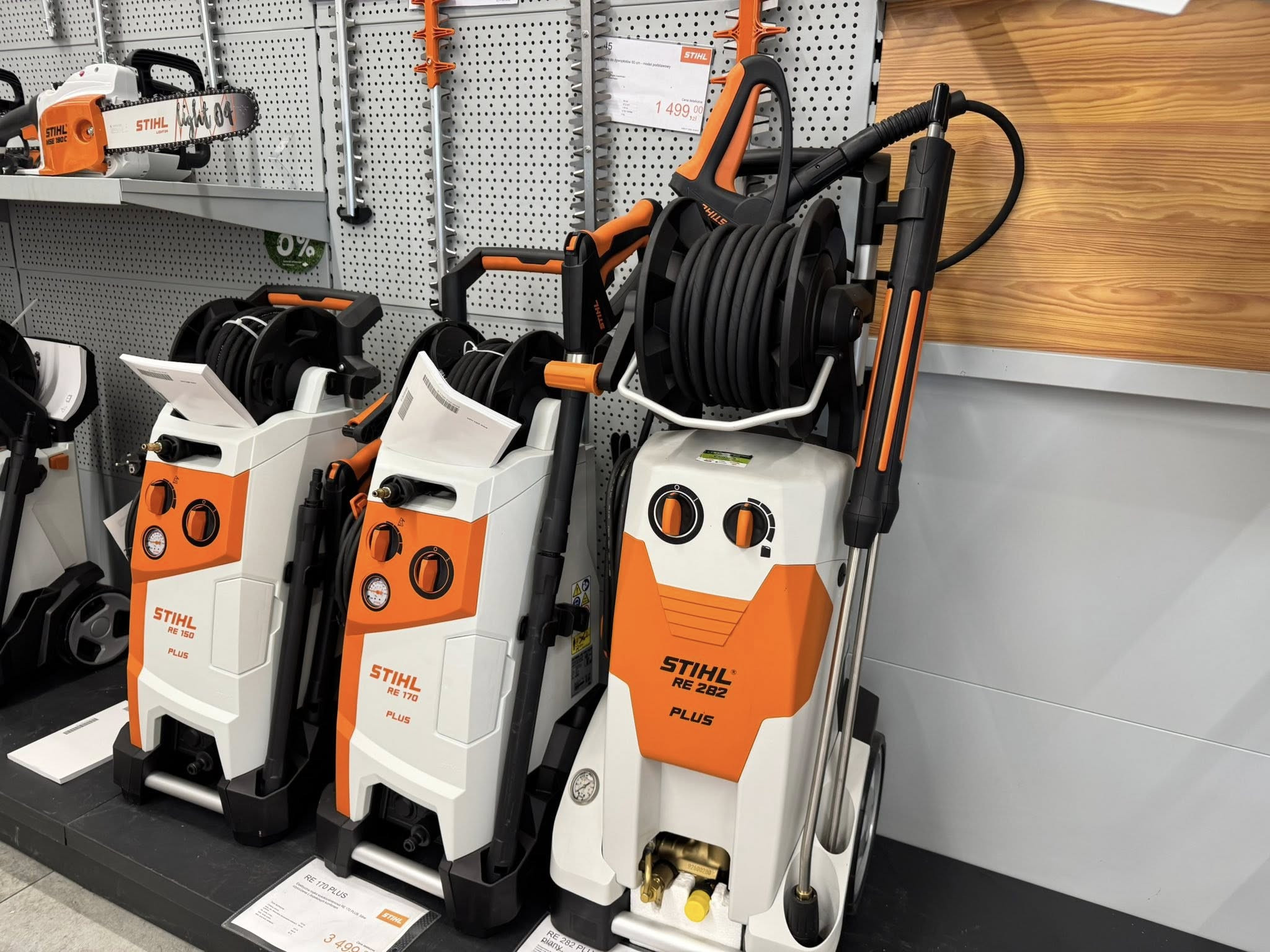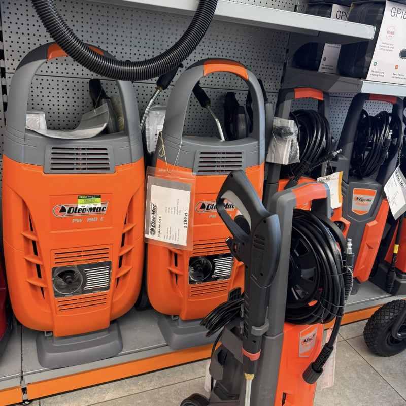 Oferujemy potężne myjki ciśnieniowe od renomowanych marek takich jak Stihl, Oleo-Mac i Stiga – idealne do czyszczenia tarasów, podjazdów, elewacji czy samochodów.